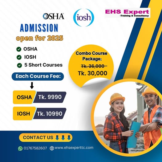 - উপকারিতাঃ কর্মক্ষেত্রে দুর্ঘটনা ও স্বাস্থ্যঝুঁকি হ্রাস করা। কর্মচারীদের সুরক্ষা নিশ্চিত করে উৎপাদনশীলতা বৃদ্ধি করা। স্থানীয় এবং আন্তর্জাতিক সেফটি রেগুলেশনের সাথে সামঞ্জস্যপূর্ণ থাকা।
