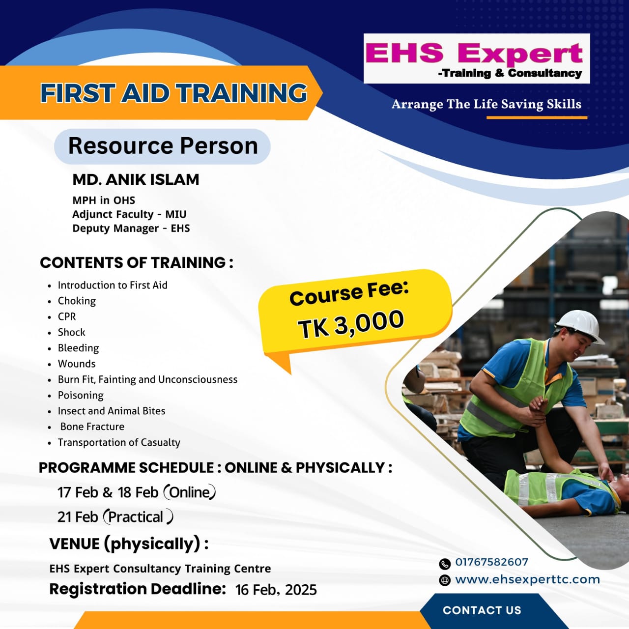 non-profit training organization, established in 2021 to provide engaging, meaningful, and convenient safety training opportunities for Bangladesh’s workforce. We are the safety training academy with a team of dedicated safety professionals who are trained and capable in the implementation of workplace safety and local regulatory compliance.